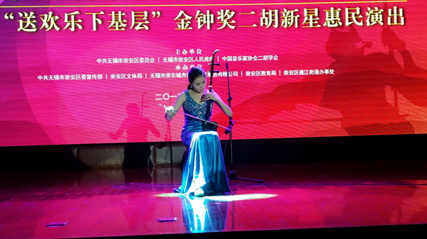 惠民演出上,第九届中国音乐金钟奖二胡比赛金、银、铜奖获得者与来自崇安区通江街道、崇安区教育局、崇安区文化馆的音乐艺术爱好者一起表演了二胡、舞蹈、演唱等精彩节目,为基层百姓送去了欢乐,为九届中国音乐金钟奖(二胡比赛)画上了圆满的句号。